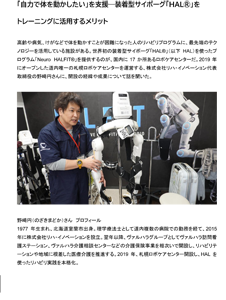 主なサービス ご利用方法 装着型ロボットHAL® 事業所概要 アクセスマップ SNSリンク 札幌ロボケアセンター お知らせ 2023年5月27日(土) 札幌ロボケアセンター:インタビューを受けました。 動画紹介 主なサービス 少しでも動きたい、歩きたい・・・その気持ちを全力でサポートします 北海道初の装着型サイボーグHAL®による「Neuro HALFIT®」を使用したマンツーマンでのトレーニング施設として2019年8月にOPENしました。 脳梗塞や脳出血、脊髄損傷、神経難病などによる障がいがある方に 対して、足や腕、腰に装着し、自身の力を利用して立つ、歩く、関節を動かすといったトレーニングを行います。 「Neuro HALFIT®」専門の講習を受けた理学療法士がトレーナーとして担当するため、質の高いトレーニング、サポートが受けられます。是非とも一度、体験してみてください。 ご利用方法 適応要件 ・介助のもと立位姿勢を保てる方 ・1人で座位姿勢を保てる方 ・体重40㎏~80㎏、身長150~185㎝程度の方 ・著しい関節の変形のない方 ・動作の手順や注意点など、トレーナーの説明 をご理解いただける方 利用料金 コースは4種類の時間があります ・30分コース ・60分コース ・90分コース ・120分コース 装着型ロボットHAL® 身体機能を改善・補助・拡張・再生することができる、世界初の装着型サイボーグです。人が体を動かそうとすると、その運動意思に従って脳から神経を通じて筋肉に信号が伝わり、その際、微弱な「生体電位信号」が体表に漏れ出してきます。 HALは、装着者の「生体電位信号」を皮膚に貼ったセンサーで検出し、意思に従った動作を実現します。 事業所概要 名称 札幌ロボケアセンター 所在地 〒063-0012 札幌市西区福井5丁目18-41 エトワール福井1階 連絡先 TEL:011-215-7965 営業時間 9:00~18:00 定休日 日曜日、祝日(年末年始休暇) スタッフ 理学療法士:3名、作業療法士:1名 アクセスマップ 店舗前に無料の駐車場がございます ※店舗の前のみ駐車可能です(建物の横は駐車できませんのでご了承ください)